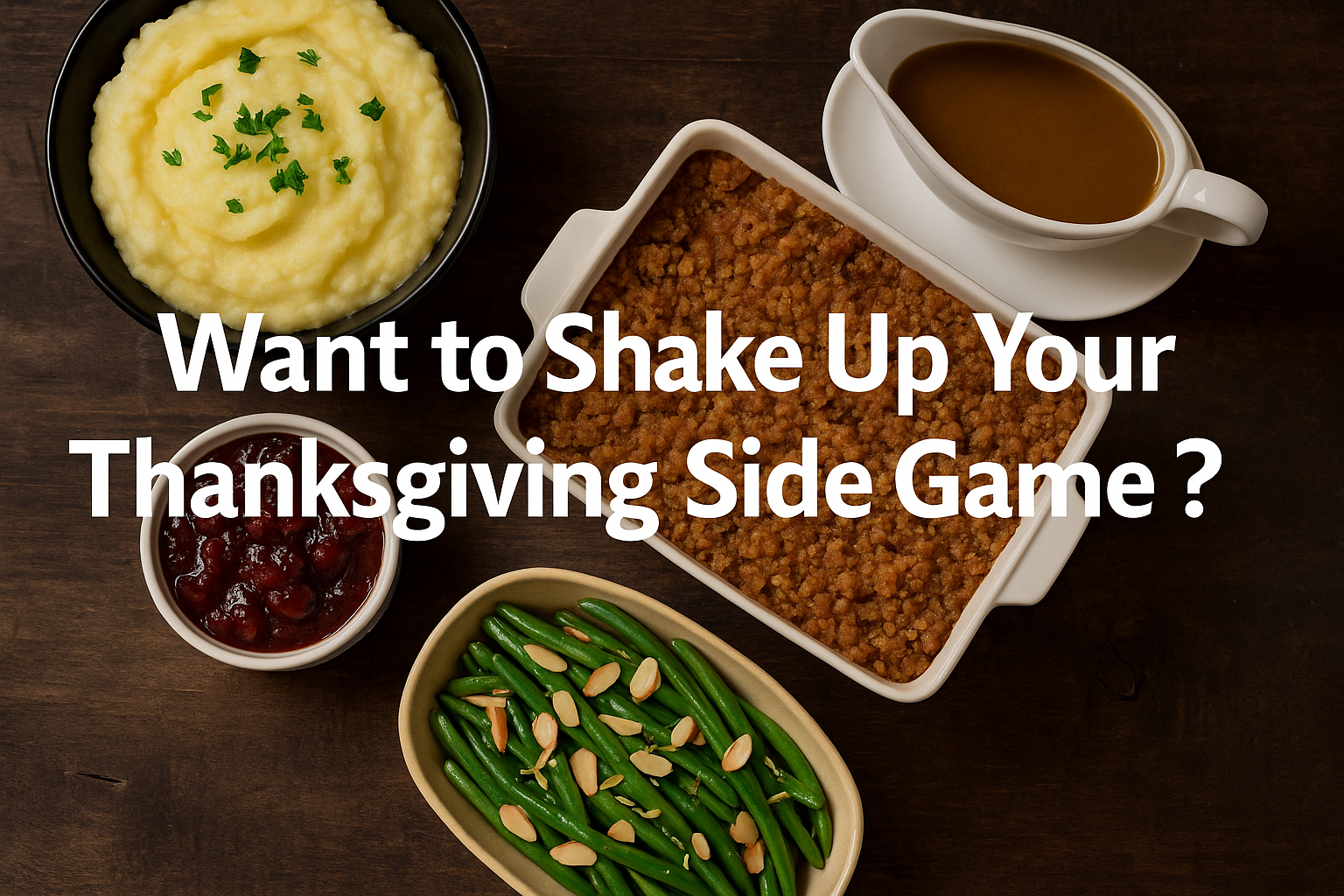 “Alright, folks, the gauntlet’s down! What sides do we wrangle this year? Mashed taters? Cranberries? We’re not settling for anything less than legendary!”